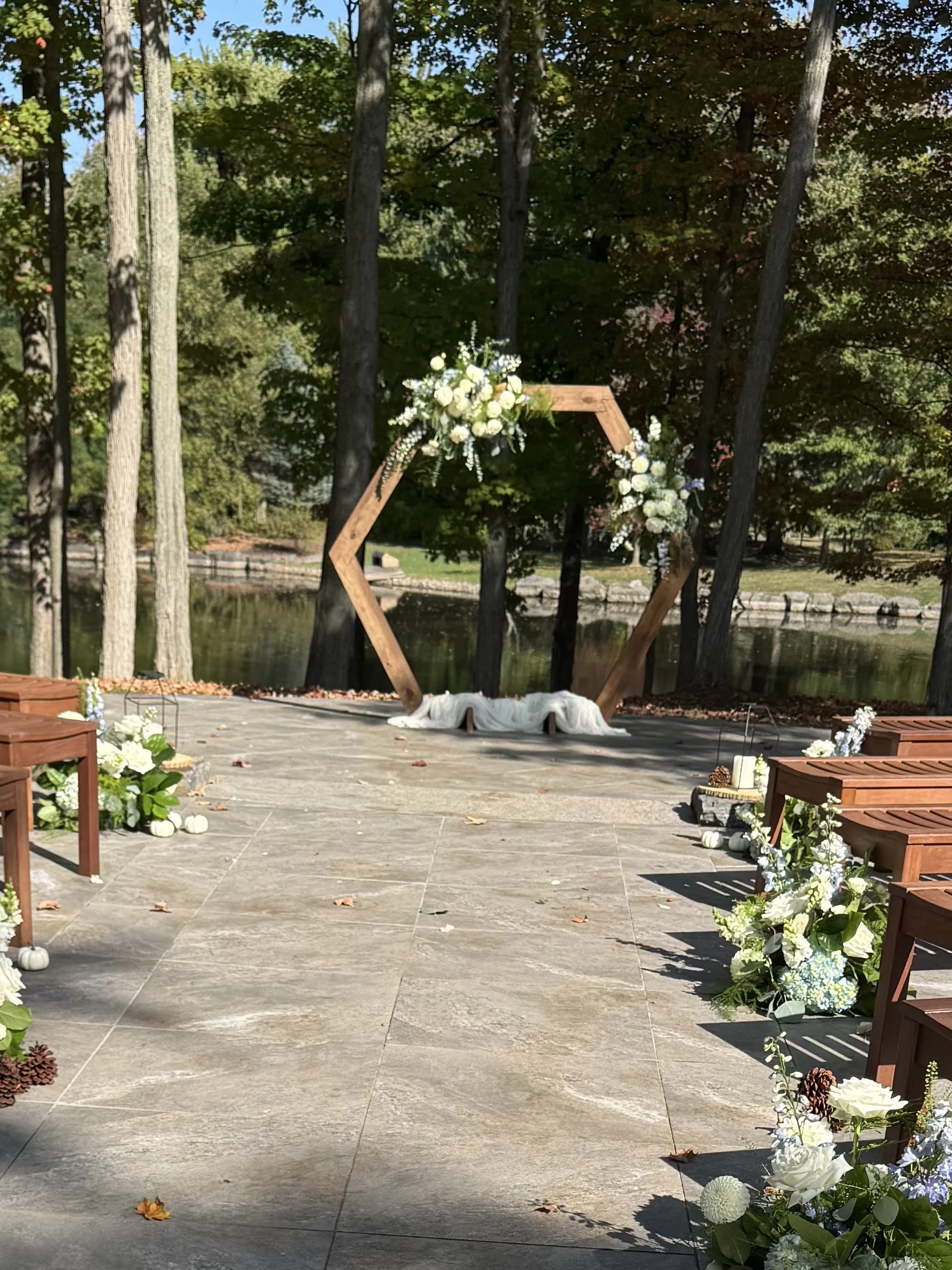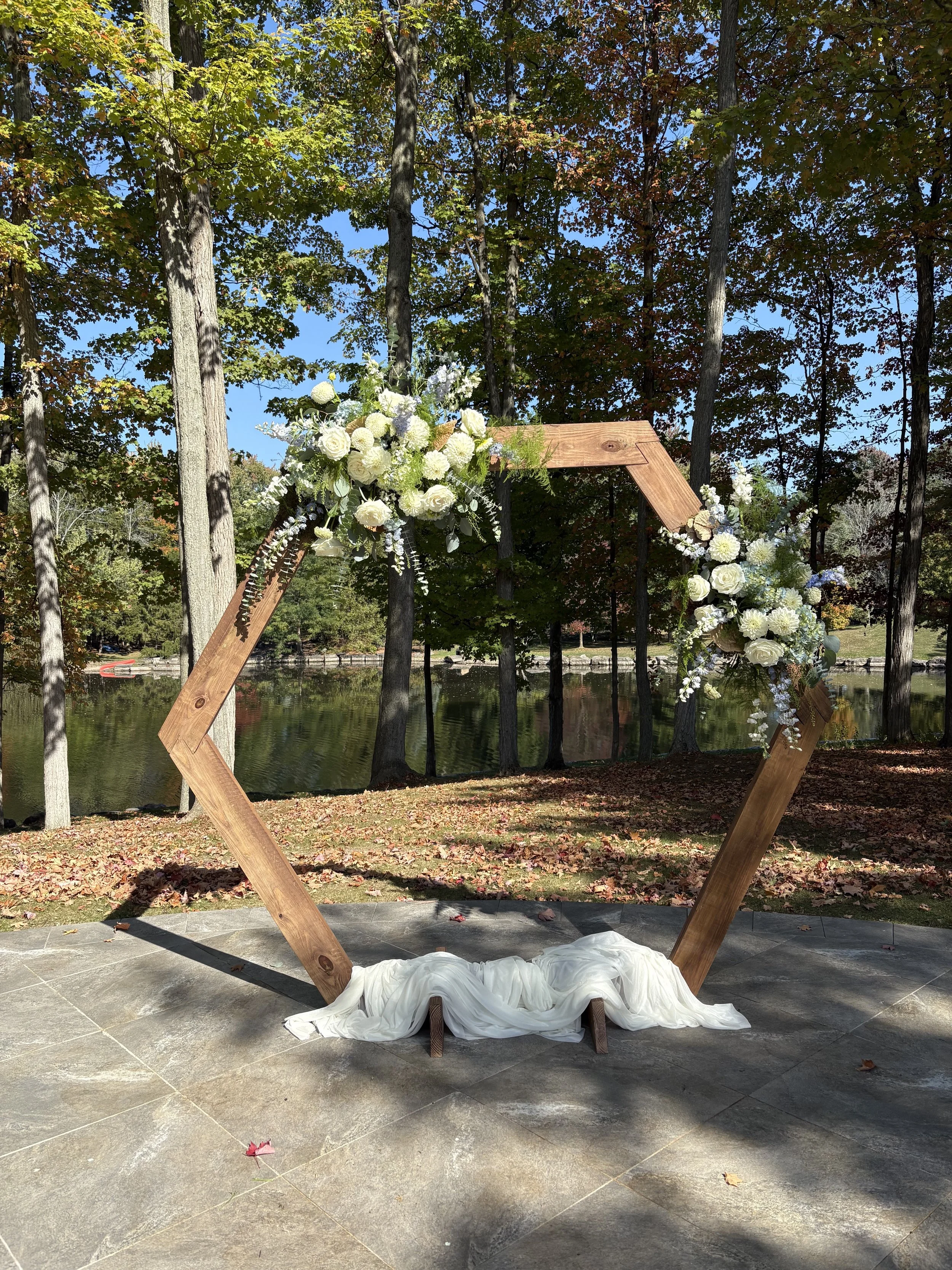 Rental Items All rentals include setup and take down. $50 refundable deposit required. Rentals Triangle Arch $200.00 Welcome sign $150.00 Jenga Jumbo $20.00 Yard Yahtzee $20.00 Cornhole yard game $25.00 Wooden Arbor $150.00 Pipe and Drape Kit $250.00 Hexagon arbor $150.00 Greenery wall $150.00